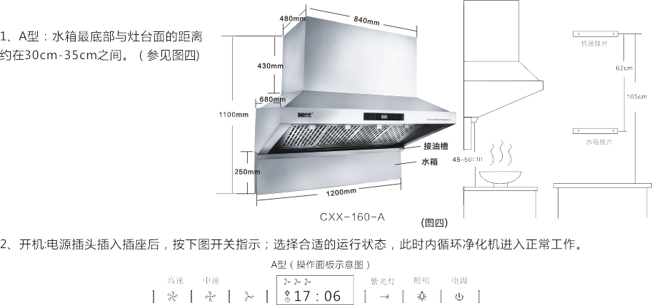 6、主機安裝完畢,后接上電源插座,試運行機器,確認機器的各功能是否正常。